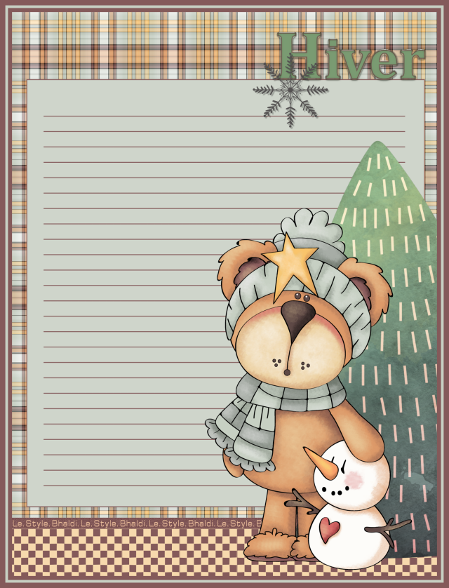 Cliquez sur l'image et sauvegarder le format original 1680 X 2200 Ourson : EARLY THYMES Sapin et flocon : KENNA SATO DESIGNS